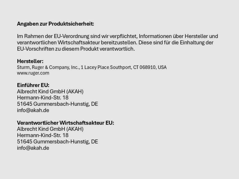Im Rahmen der EU-Verordnung sind wir verpflichtet, Informationen über Hersteller und verantwortlichen Wirtschaftsakteur bereitzustellen. Diese sind für die Einhaltung der EU-Vorschriften zu diesem Produkt verantwortlich.