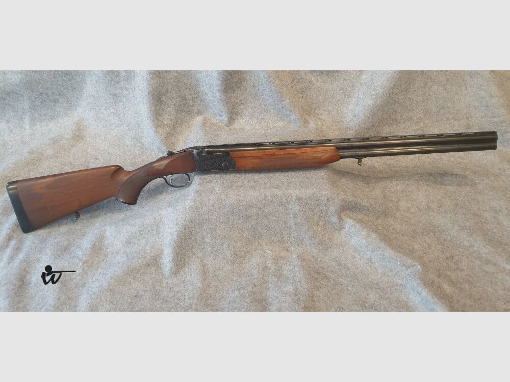Das hier angebotene BDF-Modell 500 im Kaliber 12/70, mit einer Lauflänge von 71,0 cm und 9 mm breiten Schiene ist ½ & voll Choke gebohrt. Die schwarze Basküle und Stahlteile sind reich graviert und schmücken die Waffe die sich in einem gepflegten Zustand befindet. Der Schaft ist neutral für Links-/Rechtsschützen gleichermaßen ausgelegt und hat eine Länge von 37,0 cm vom Abzug ausgemessen. Sie verfügt über einen Einabzug mit Umschaltung im Züngel und der Sicherungsschieber verhindert eine ungewollte Schussabgabe bei der Handhabe. Beim Brechen der Flinte werfen die 2 kräftigen Ejektoren sicher die abgeschlagenen Hülsen aus dem Patronenlager.